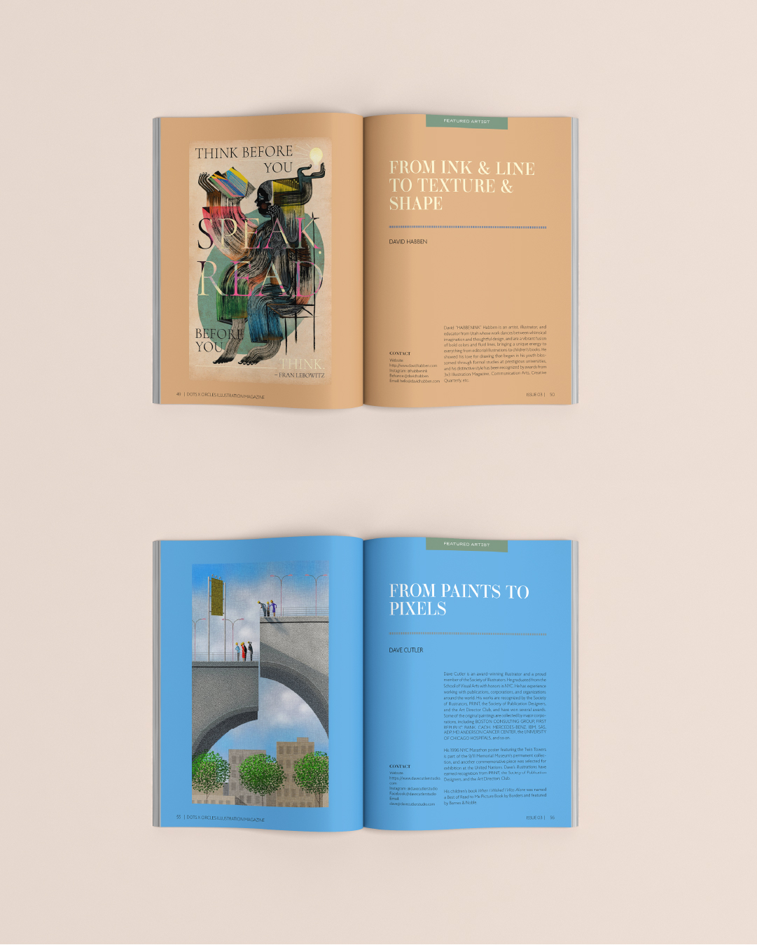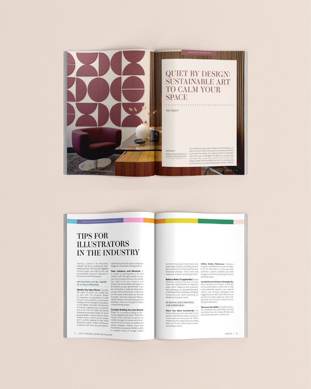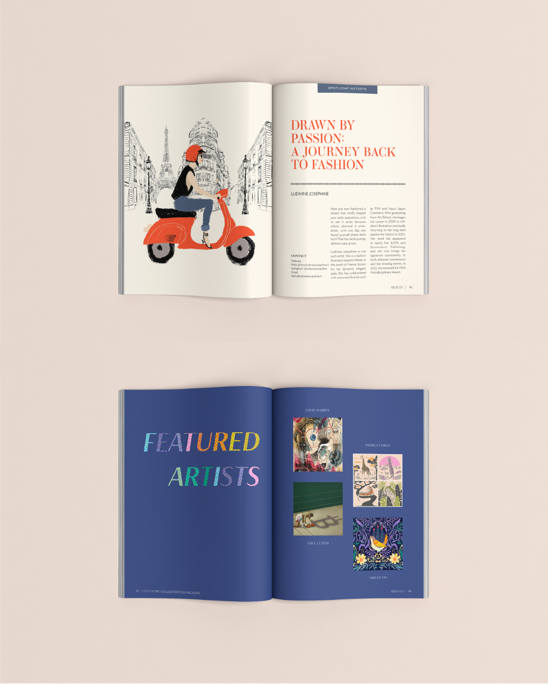 Dots x Circles Illustration Magazine – Issue 03 features articles with bold visuals, compelling stories, and insider knowledge from the illustration world. This issue showcases the voices and visions shaping today’s creative industry, from mesmerizing pattern designs and detail-rich editorial pieces to poetic narratives and retro-inspired surfaces, along with practical tips every illustrator can use to grow and thrive.