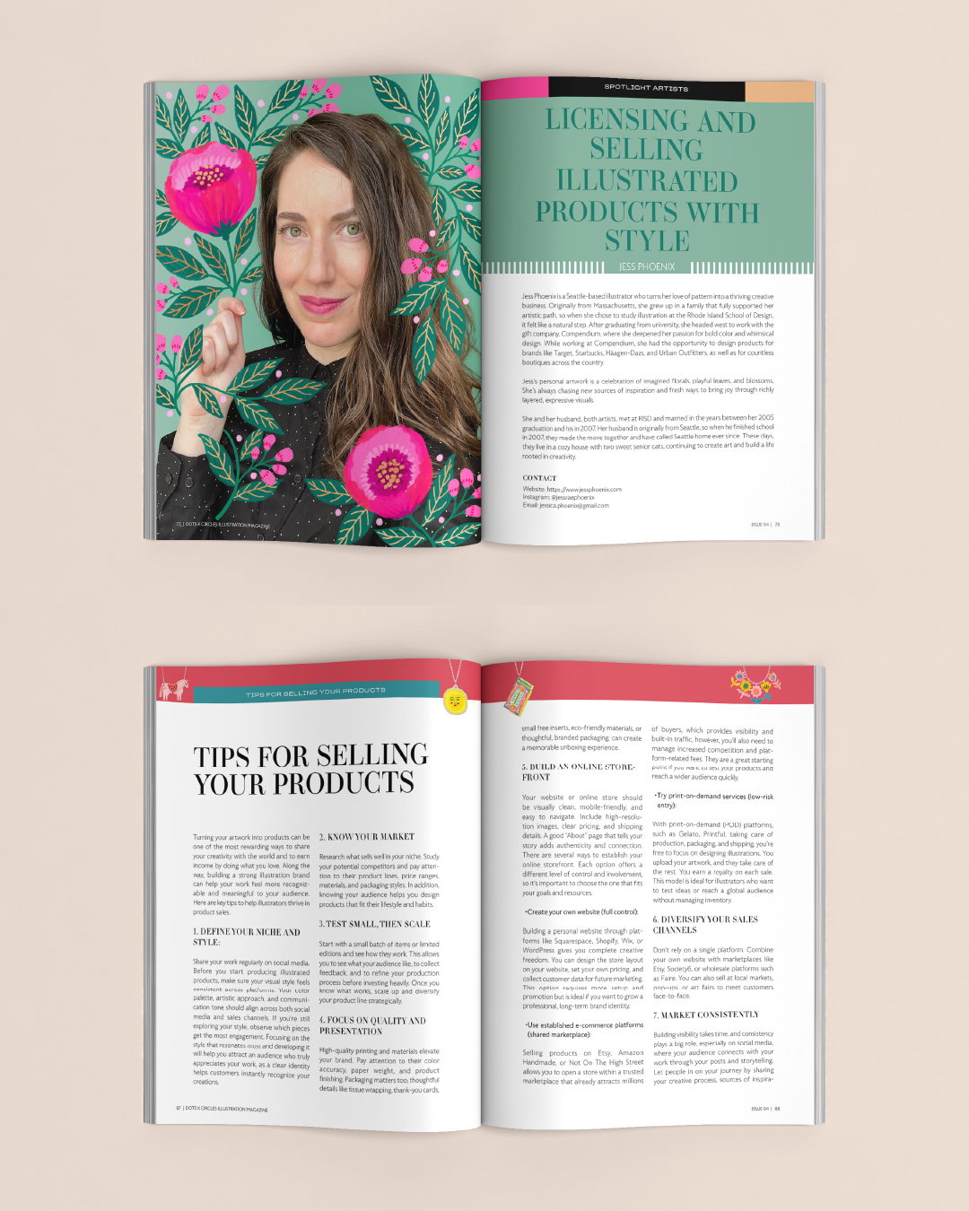 This issue explores the art of selling illustrated goods and licensing artwork, featuring insights from eight talented illustrators. We have also included practical tips on selling illustrated products and art licensing. We hope these insights help you take your creative business to the next level!