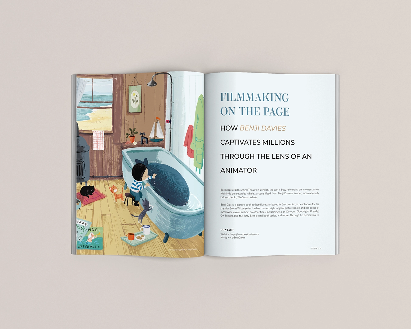 We are honored to feature Benji Davies as our Illustrator in Focus. The cover showcases an illustration from The Storm Whale, a story that has quietly touched millions of readers around the world. Through this image, we want to express something that feels especially important right now: even as more creators experiment with AI-generated imagery, we must not lose sight of why we create in the first place. Art is not just about creating images. It is about expressing emotion, capturing fleeting moments, and sharing perspectives shaped by lived experience.