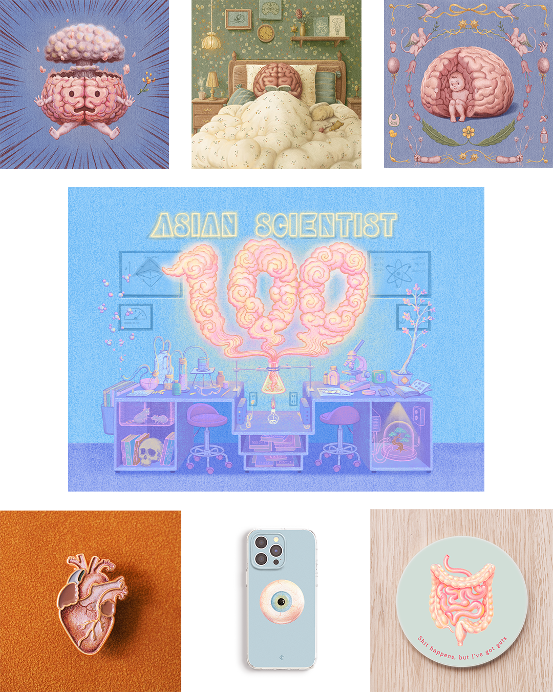 When you see phone cases or clothes with medical illustrations, the first person who comes to mind is Emma Cheng. Emma Cheng, originally from Taiwan, trained there as a doctor before moving to the United States in 2021. Her work has been featured in renowned publications like The New York Times, The Washington Post, and Harvard Public Health, and she has received international illustration awards, including recognition from American Illustration, the Society of Illustrators, 3x3, and Communication Arts.